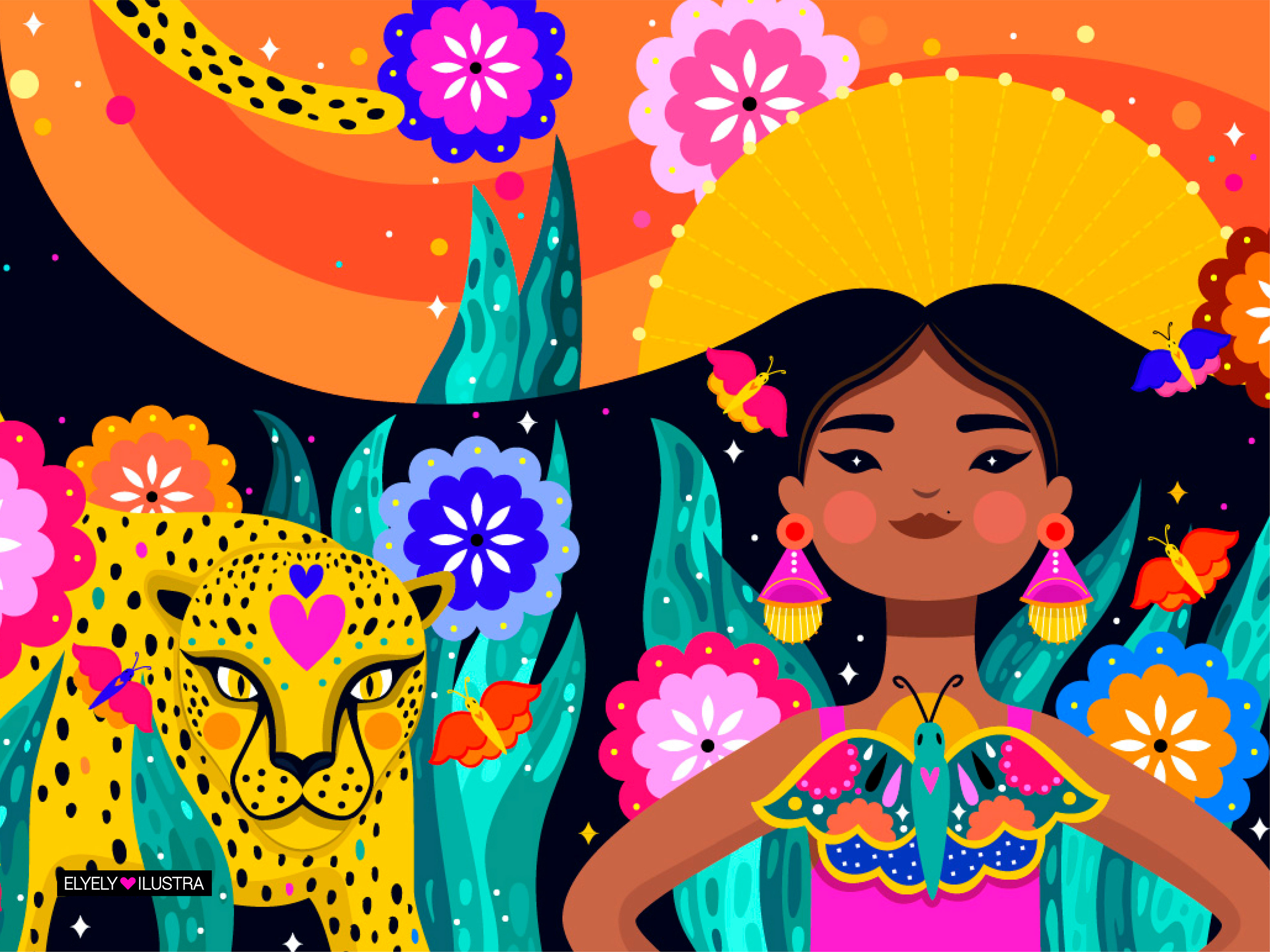 By Catherine Russier Design of cover and interior illustrations for the book Jaguars and Butterflies.